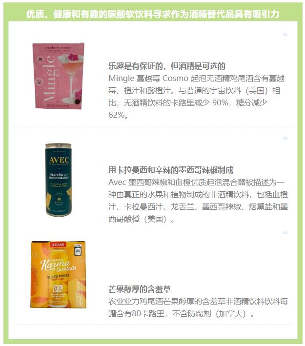 消費者對酒精替代品的高度興趣為CSD品牌提供了使用機會。為了鞏固其作為酒精替代品的地位,CSD 將需要提供更適合的品質(例如低糖、卡路里含量)以及復制與酒精相關的特定口味期望。